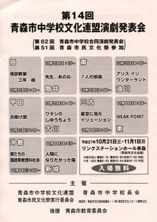23日 10月 2015 第14回 青森市中学校文化連盟演劇発表会 青森市中学校文化連盟演劇発表会の季節が今年もきました^^。10月31日と11月1日です。 いつも以上に楽しみなのは、中高生オリジナル創作劇作り合宿2015に参加してくれたみんなが出演するらしく、非常にどきどきしています^^d 場所は、リンクステーション青森です。入場は無料です。 tagPlaceholderカテゴリ: 2015年10月 コメントをお書きください コメント: 0